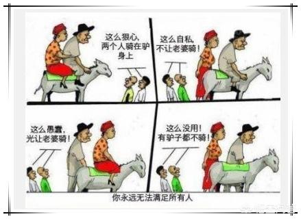 另外,一个人再优秀,也很难做到令所有人满意,就像能量守恒一样,总会触碰一部分人的利益。就像爷孙俩骑驴的故事一样,总有人说三道四。