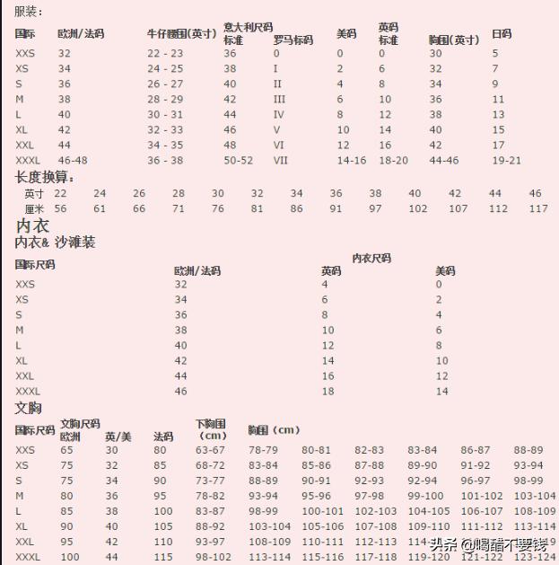 美国裤子尺码和国内的对照表不同,中国的尺码对照表标是以cm为准: 160-165/84-86、165-170/88-90、167-172/92-96、168-173/98-102、170-176/106-110。 而美国标准是按2、4-6、8-10、12-14、16-18为准。